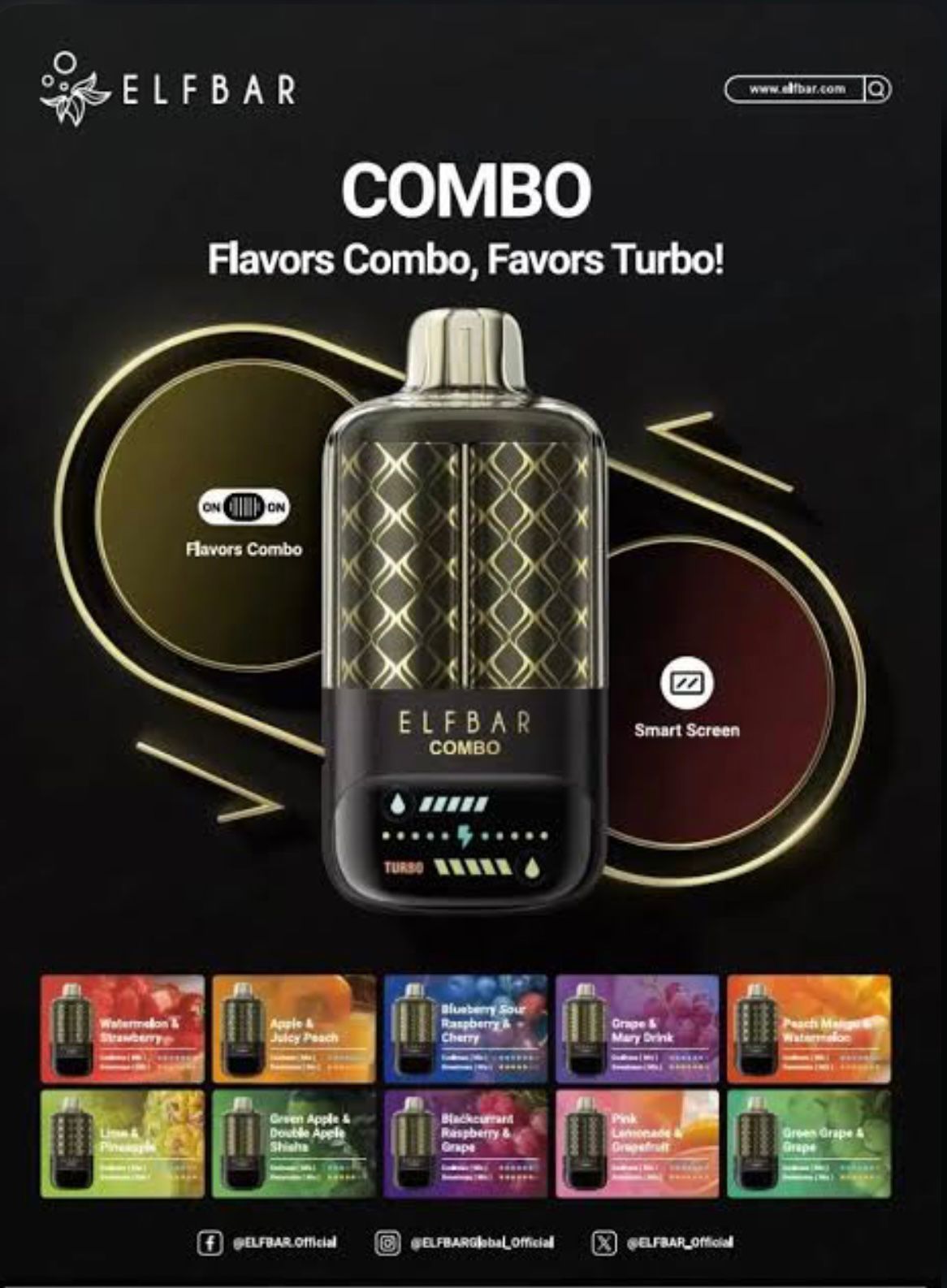 The Elf Bar Combo 25000 has a maximum puff count of 25000. This cutting-edge disposable vape pen offers an unparalleled experience by combining three flavors, two modes, and two airflow systems into one device. It accomplishes this by applying the newest, most advanced design ideas and production processes. The Elf Bar Combo 25000’s best features are its dual airflow design and flavor combo.